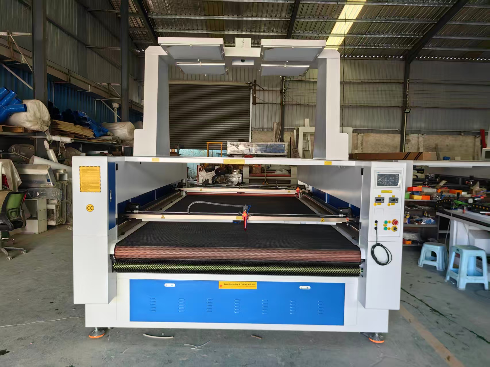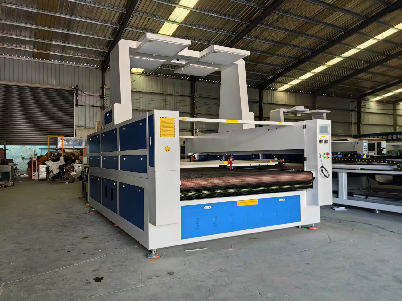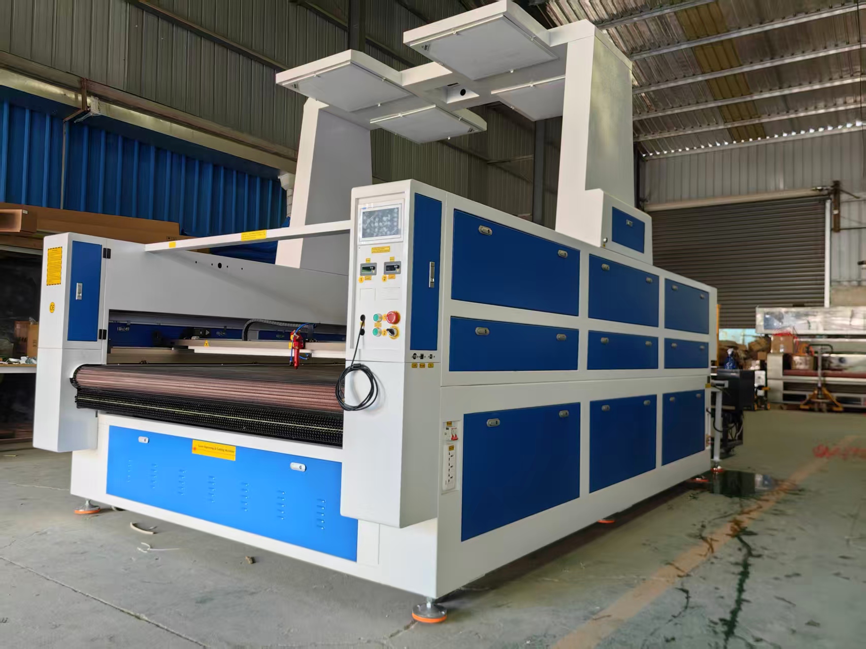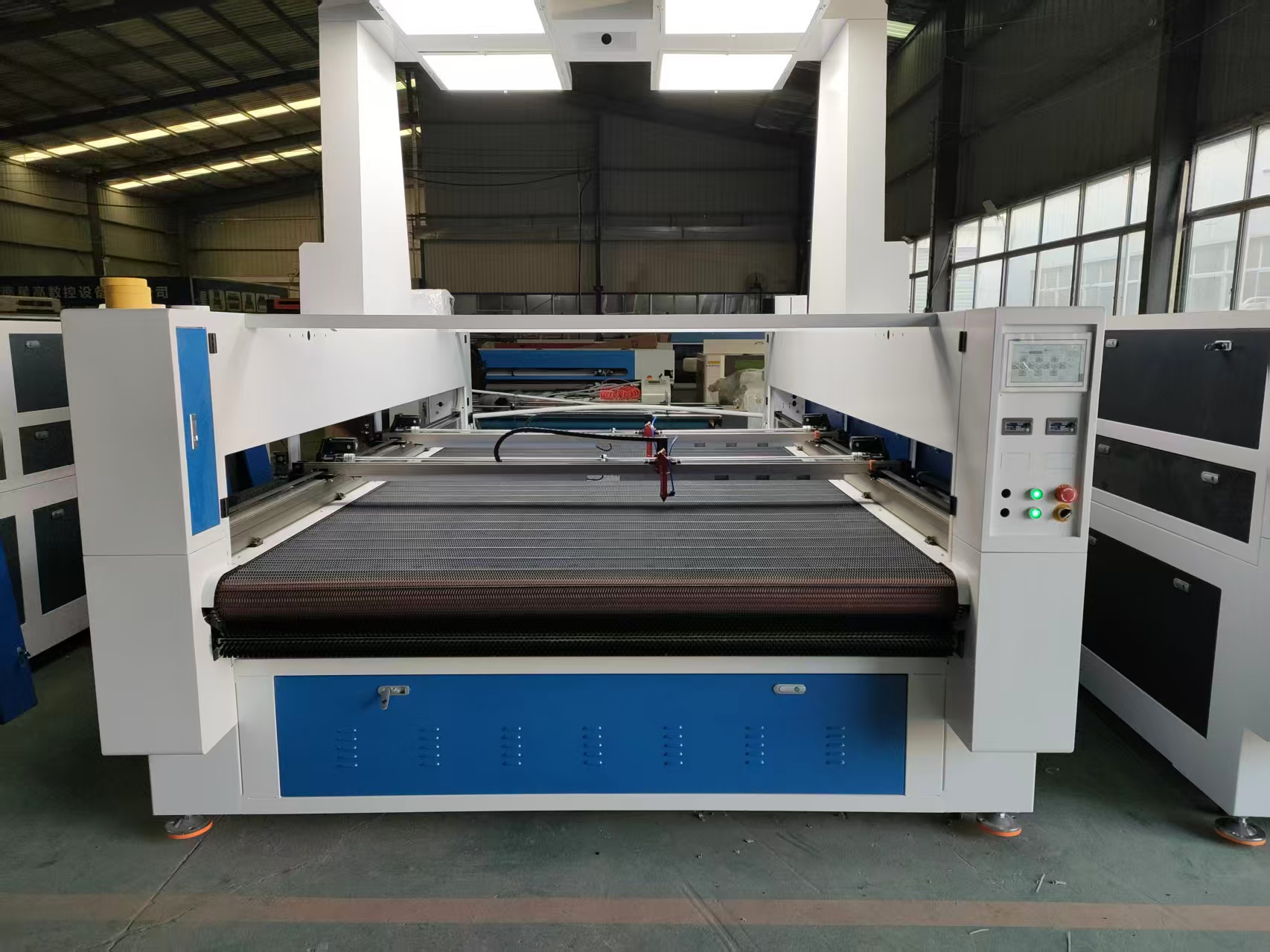 This large-size automatic feeding and cutting machine features a large camera for automatic recognition and positioning, two laser power supplies, double the working efficiency, and a wider range of applications.