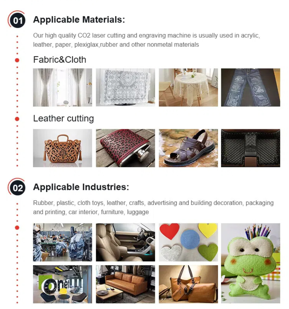 There are two types of laser cutting machine co2 produced by Perfect Laser. One is a small clamshell laser engraving machine with a working format of 1600*1000mm, 1800×1000mm, etc. The other is a bed-cutting laser engraving and cutting machine, equipped with 1600×3000mm。 It is widely used in advertising and clothing industry, for acrylic carving and cutting, wood carving and cutting, clothing fabric cutting, etc.