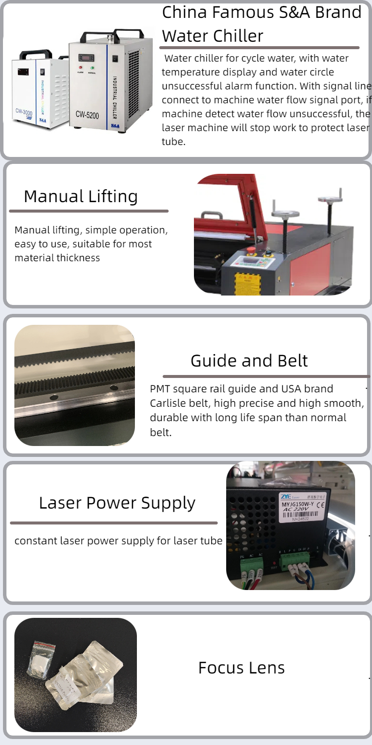 * Outside assistant device water chiller, air pump, software ensure the machine work correctly.