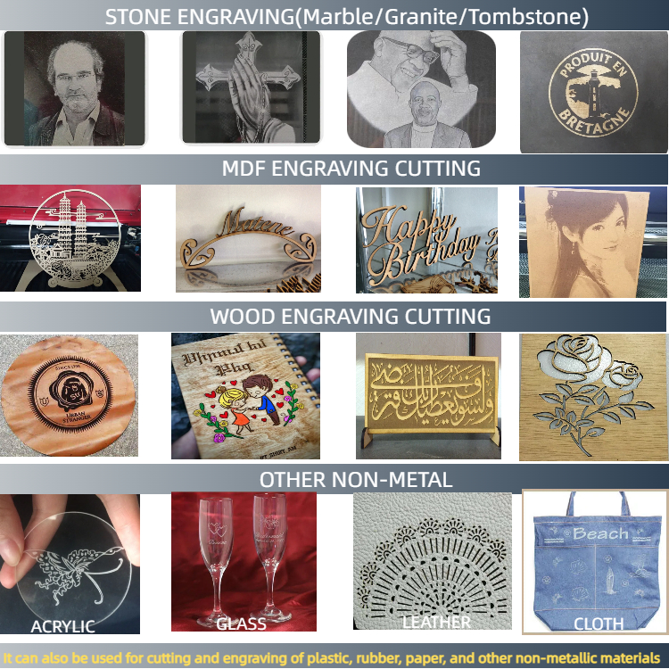 Lansen this stone marble granite engraving machine is mainly design for huge marble stone engraving work. The machine with universal wheels can easy move around to put on any huge marble stone. With the 260mm electric up down distance, can put on almost all thick marbles stones include tombstones. This stone laser engraving machine with working area of 1000x600mm , the working area and up down distance can also customize according requirements. Though this laser engraving machine special suit for marble engraving work, it can also use to engrave cut other nonmetal material like wood, MDF, acrylic,etc. Thus have a widely usage for almost all industry.