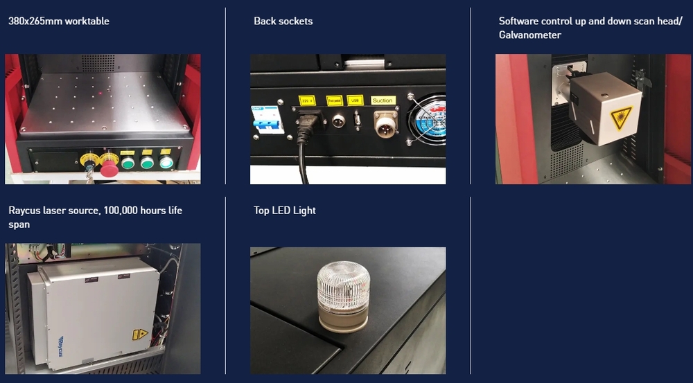 The Closed Fiber Laser Marking machine has a sealed structure. During work, fog will be kept in the enclosed laser cabinet without emission to outside. Environmental, friendly and healthy, this design is special for European market or other markets which have high demands for working environment. The effect of the metal etching machines is particularly outstanding.