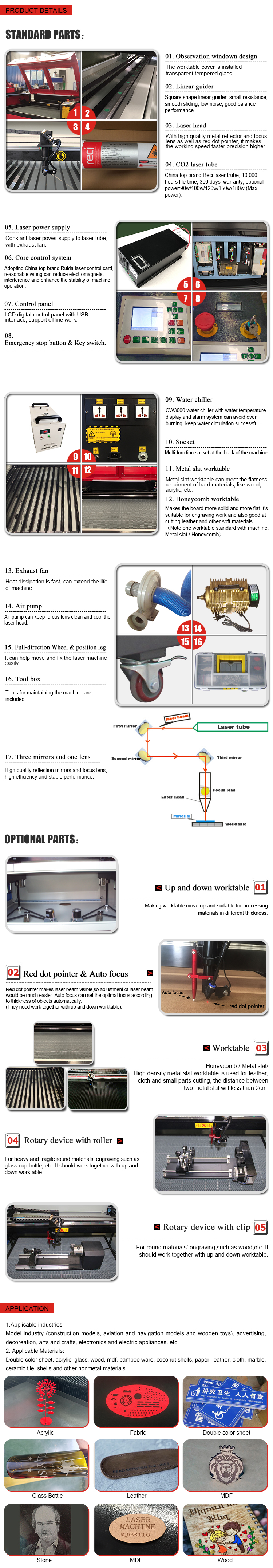 This equipment can be applied to different kinds of materials and has many advantages such as smooth cutting edges, free from polishing, dust free, fast processing speed, high precision, less waste and higher efficiency. It is the best optional for upgrading traditional equipments in various industries. The professional laser engraving and cutting software installed in it, is particularly designed and written for engraving and cutting It's with high compatibility powerful editing function, friendly interface, easy to install and use, can support DXF, PLT, BMP, Al and many other graphs, support win 7, win 8 and win 10 computer operating system
