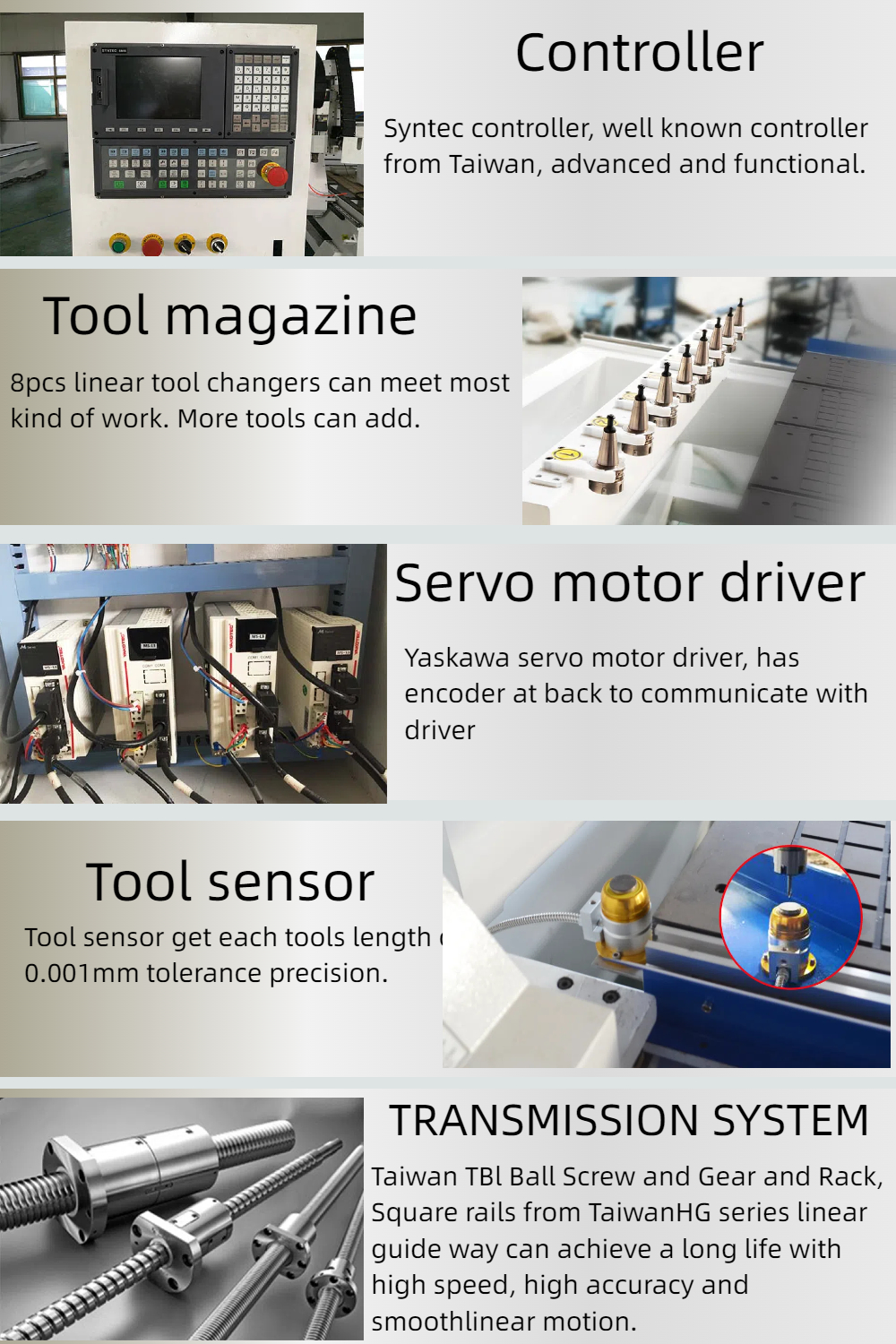 1) Control system: DSP/Ncstudio / Syntec optional, popular and easy operation.