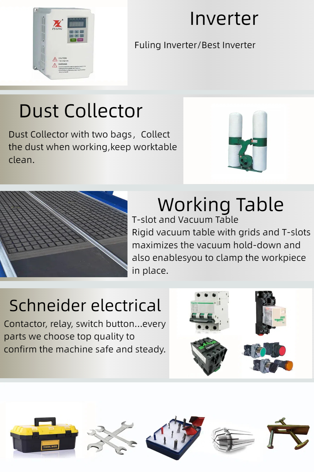 2) High quality air-cooling Spindle: Long working life, easy maintenance;