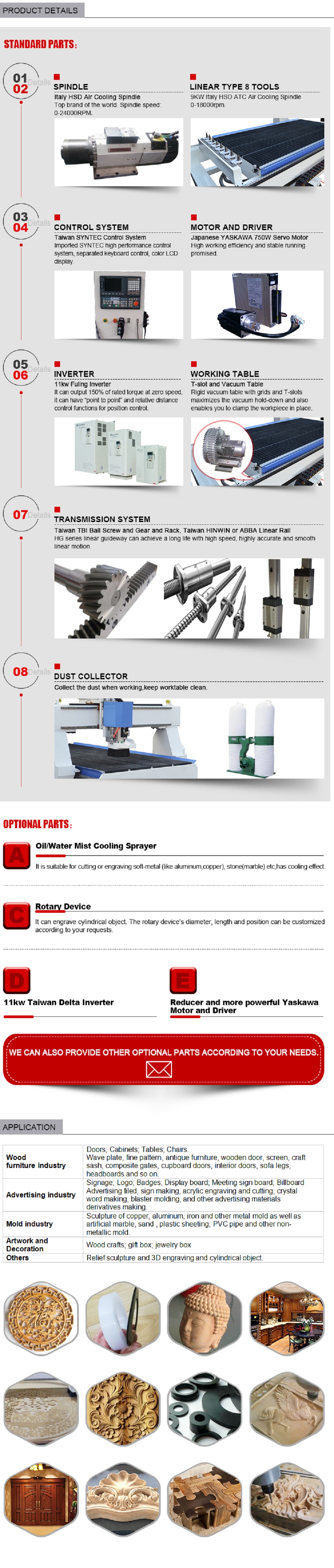 This kinds of CNC wood router is also called Cnc Wood Carving Machine or CNC Wood Engraving Machine in the Wood Cnc Machine industry. It is a basic woodworking engraving cutting machine with strong welding steel tube frame and a T-slot vacuum table.