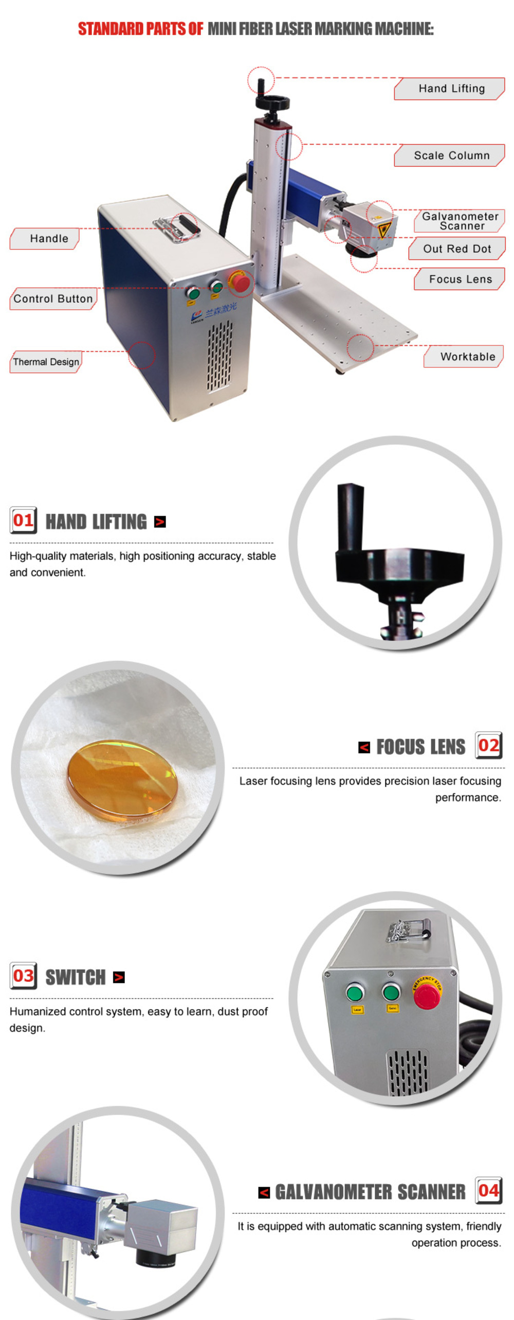 This kind of Disk laser marking machine is a high-efficiency laser coder specially developed and manufactured for animal ear marking market. The Disk Fiber Laser Marking machine adopts imported high-quality laser source, the beam quality is excellent and the marking lines of this Disk Fiber Laser Marking machine are smooth and fine. At the same time we equipped with the special coding software and professional customized working platform to automatically arrange serial number, input multi-character and two-dimensional code to fast and accurate realizing various marking on livestock ear tag and labeling surface.