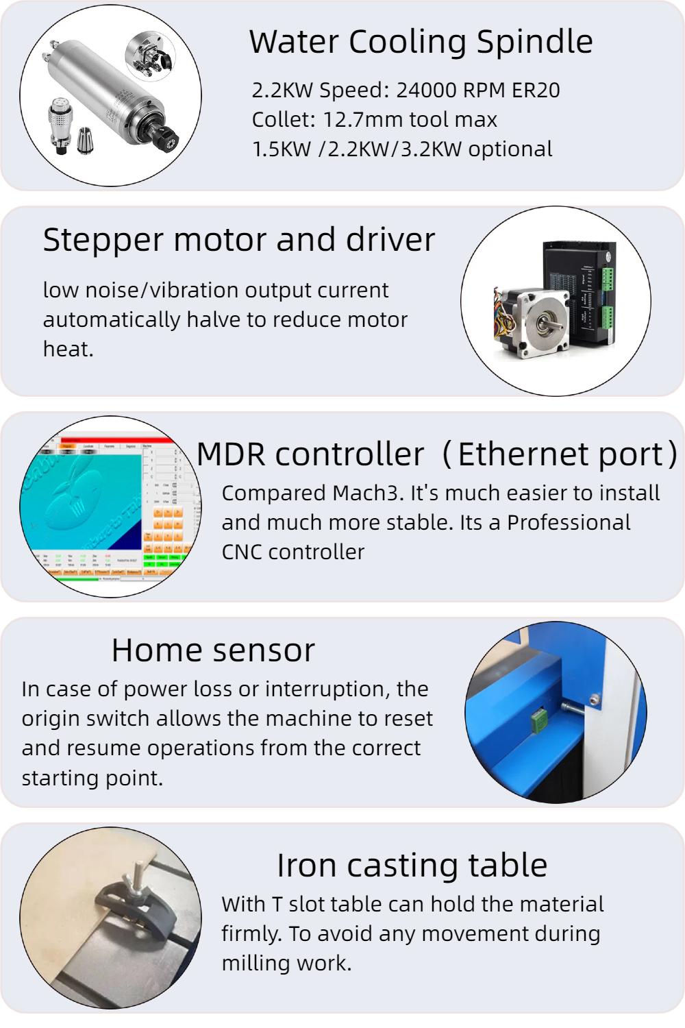 1.5KW/2.2KW /3.2KW (0-18000rpm)Water Cooling(Higher PowerOptional) |